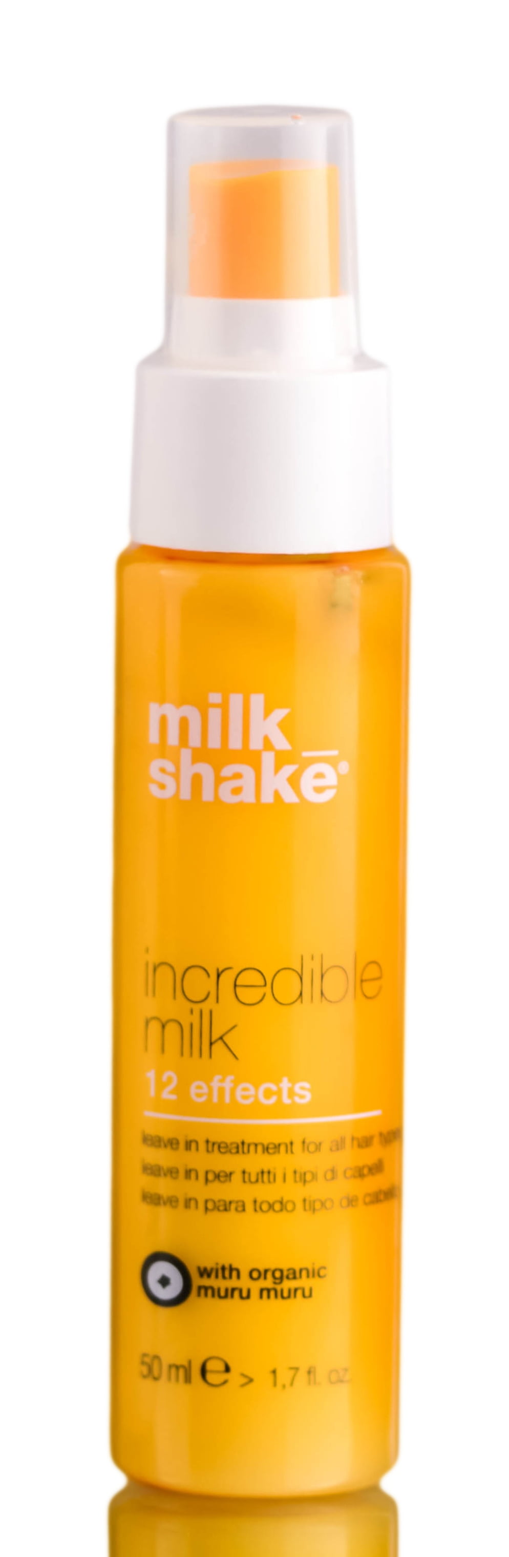 milk_shake incredible milk is an intense leave-in spray mask hair treatment that performs twelve actions: protects hair from UV rays; repairs all hair types; maintains color; protects from heat; detangles; maintains hair style; adds maximum shine; creates body and volume; controls frizz; banishes and prevents split ends; easy straightening; smoothes the cuticle.
